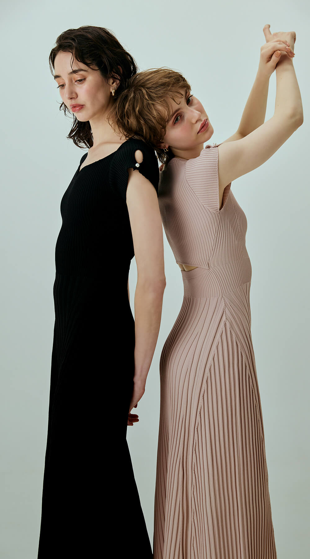 胸から脇下にかけてリブ幅を変化させることで、自然な立体感とくびれラインを視覚的に強調。
