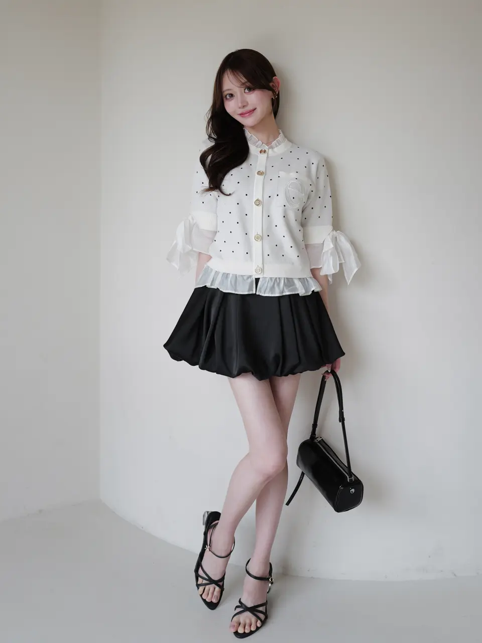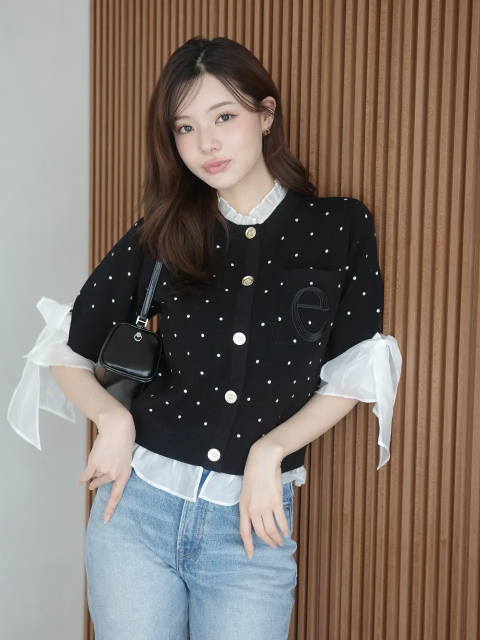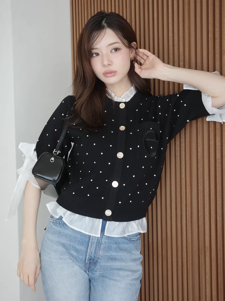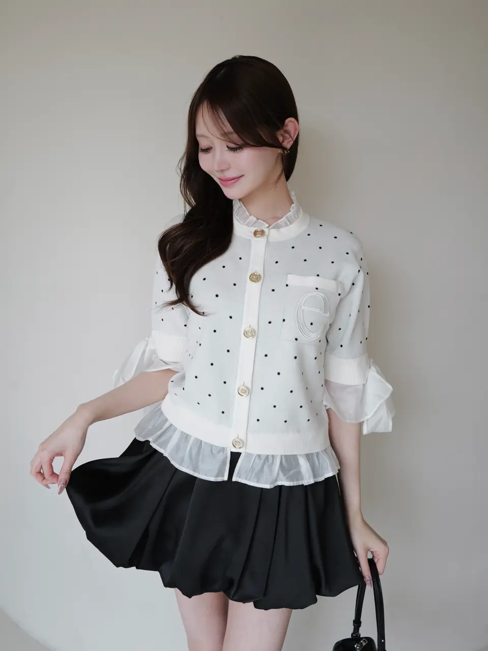 Dot Attached-Collar Half-Sleeve Cardigan(BLACK) / ¥18,920(tax in)
