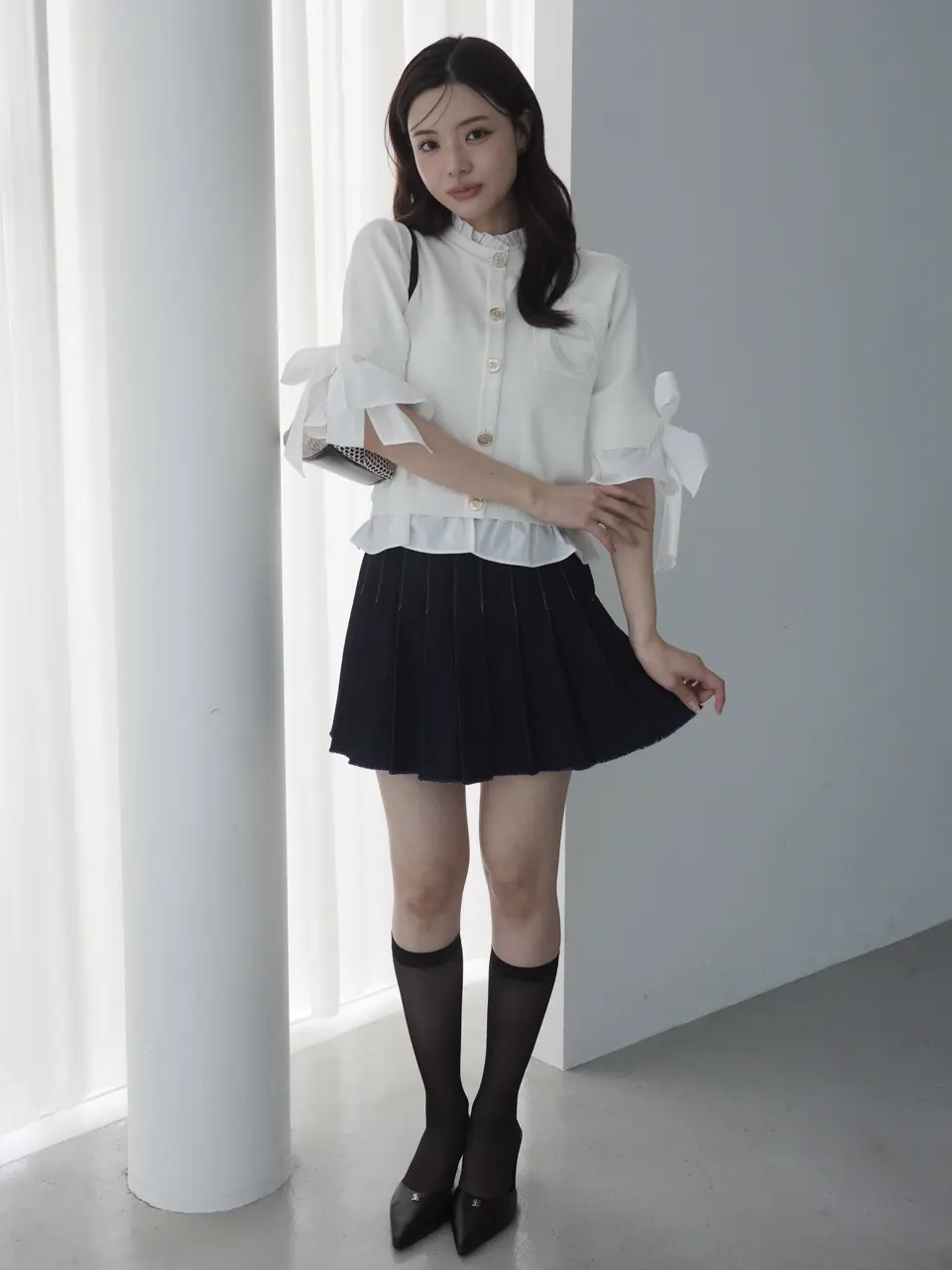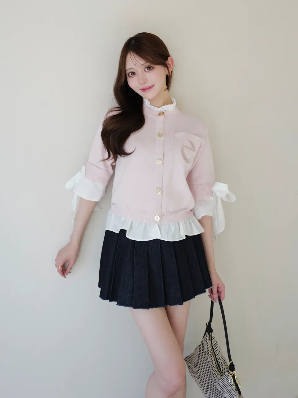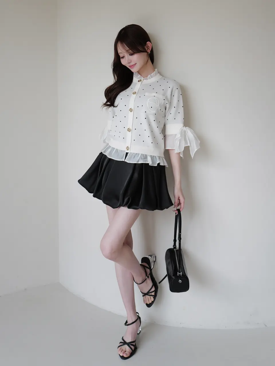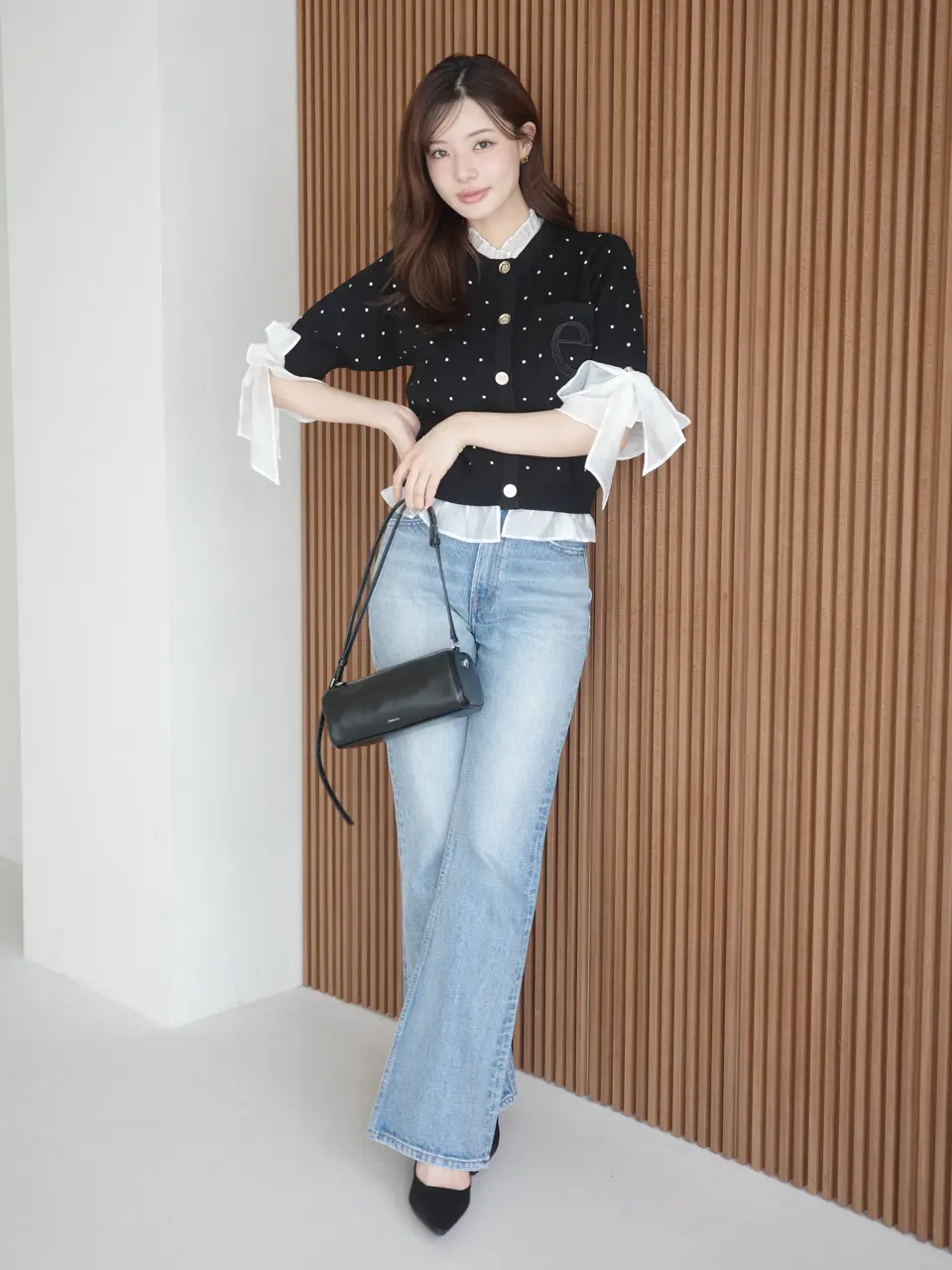 Dot Attached-Collar Half-Sleeve Cardigan(BLACK) / ¥18,920(tax in)