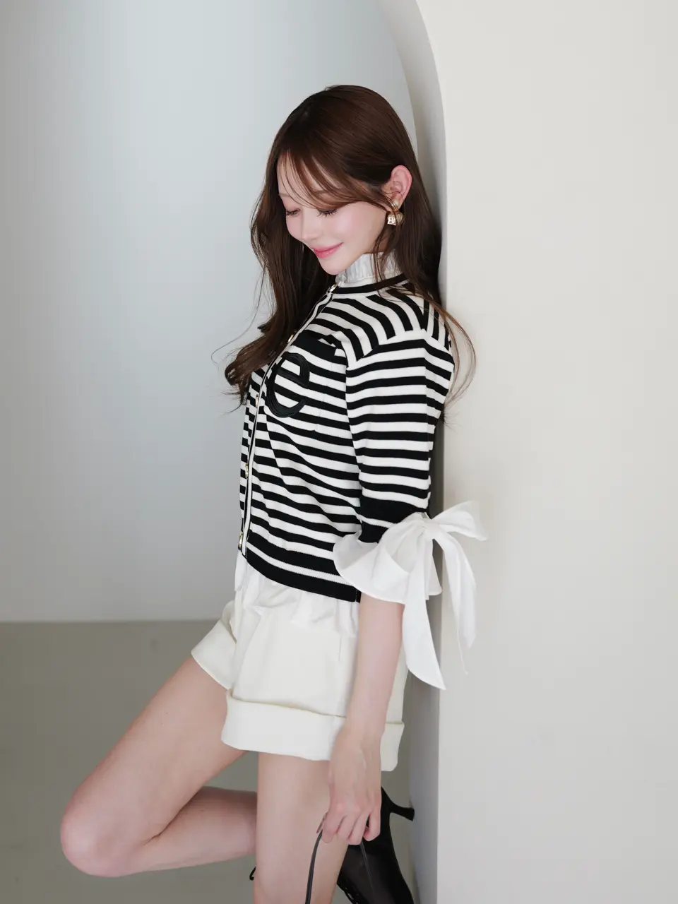 Attached Collar Half-Sleeve Cardigan(BORDER) / ¥18,920(tax in)