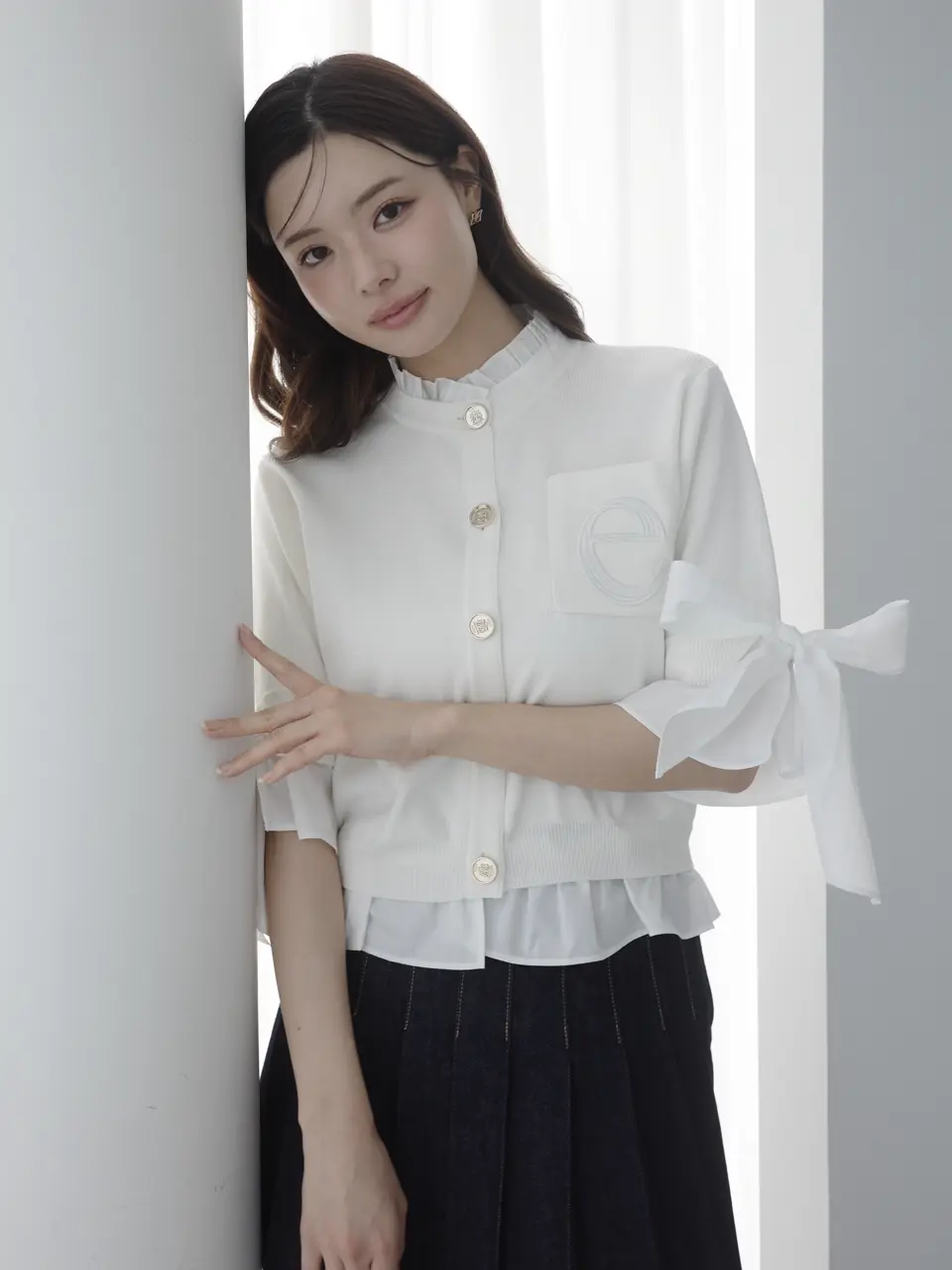 Dot Attached-Collar Half-Sleeve Cardigan(WHITE) / ¥18,920(tax in)