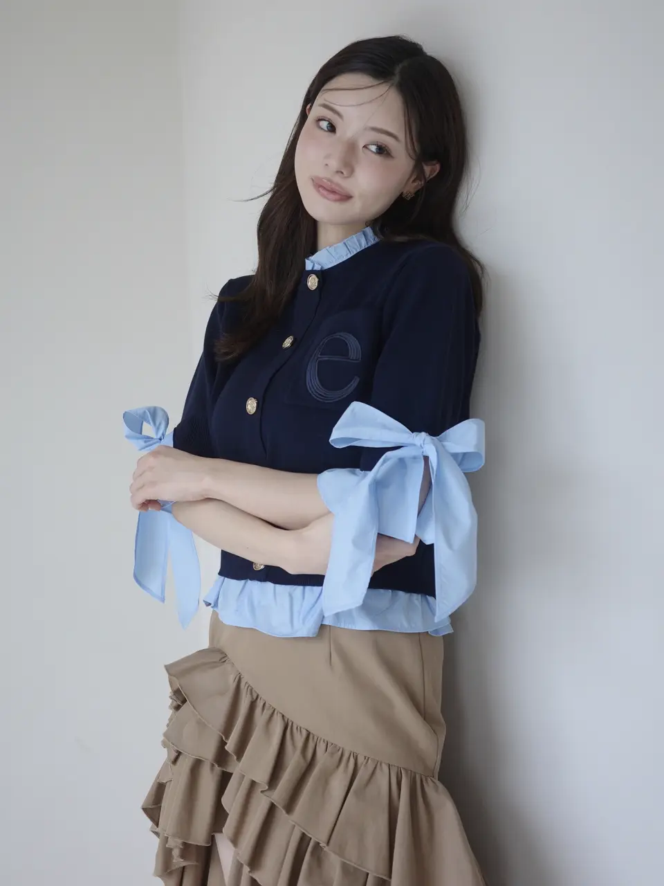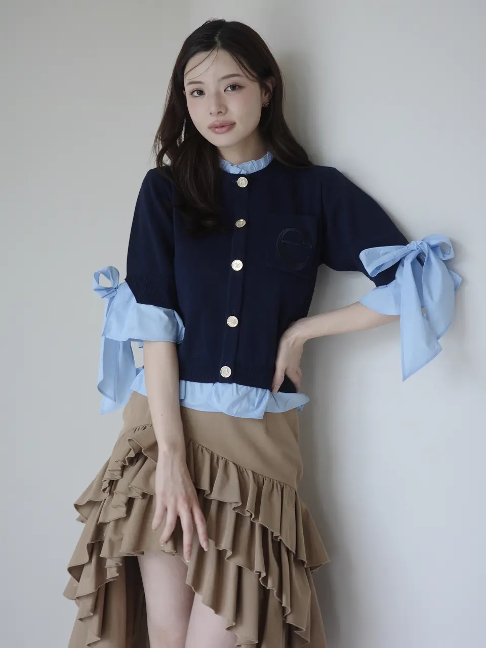 Attached Collar Half-Sleeve Cardigan(NAVY) / ¥18,920(tax in)