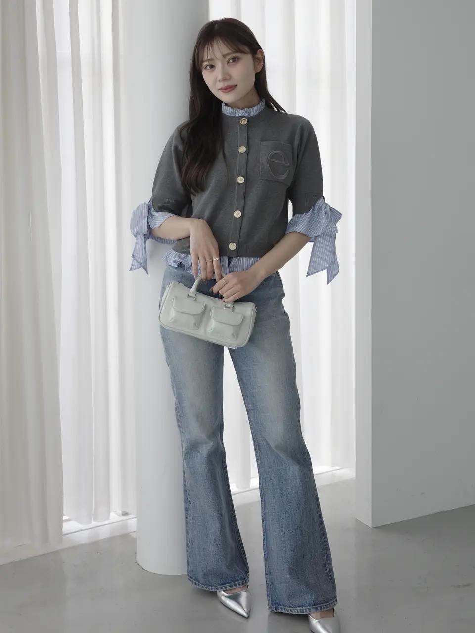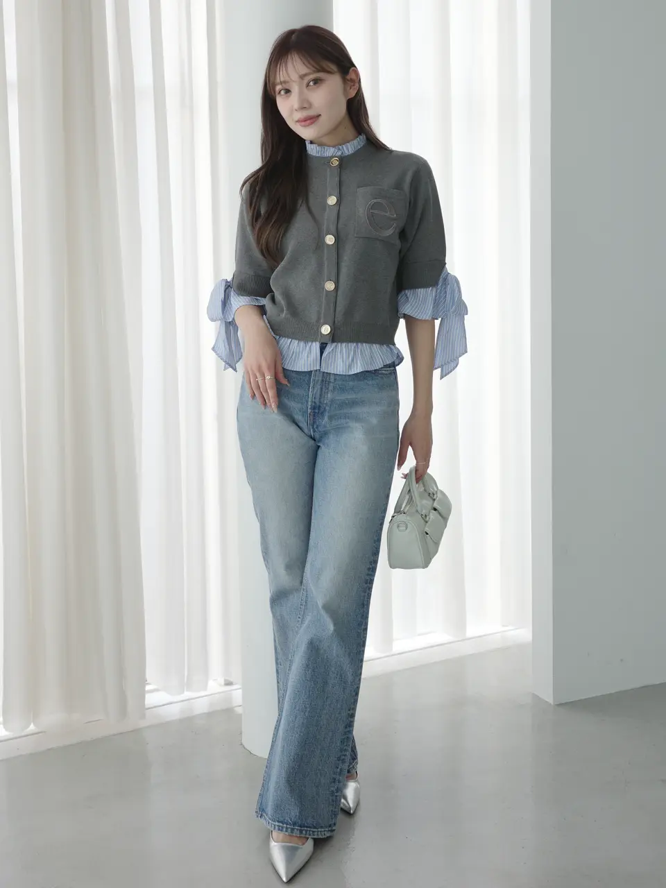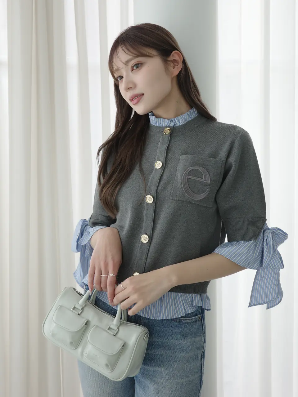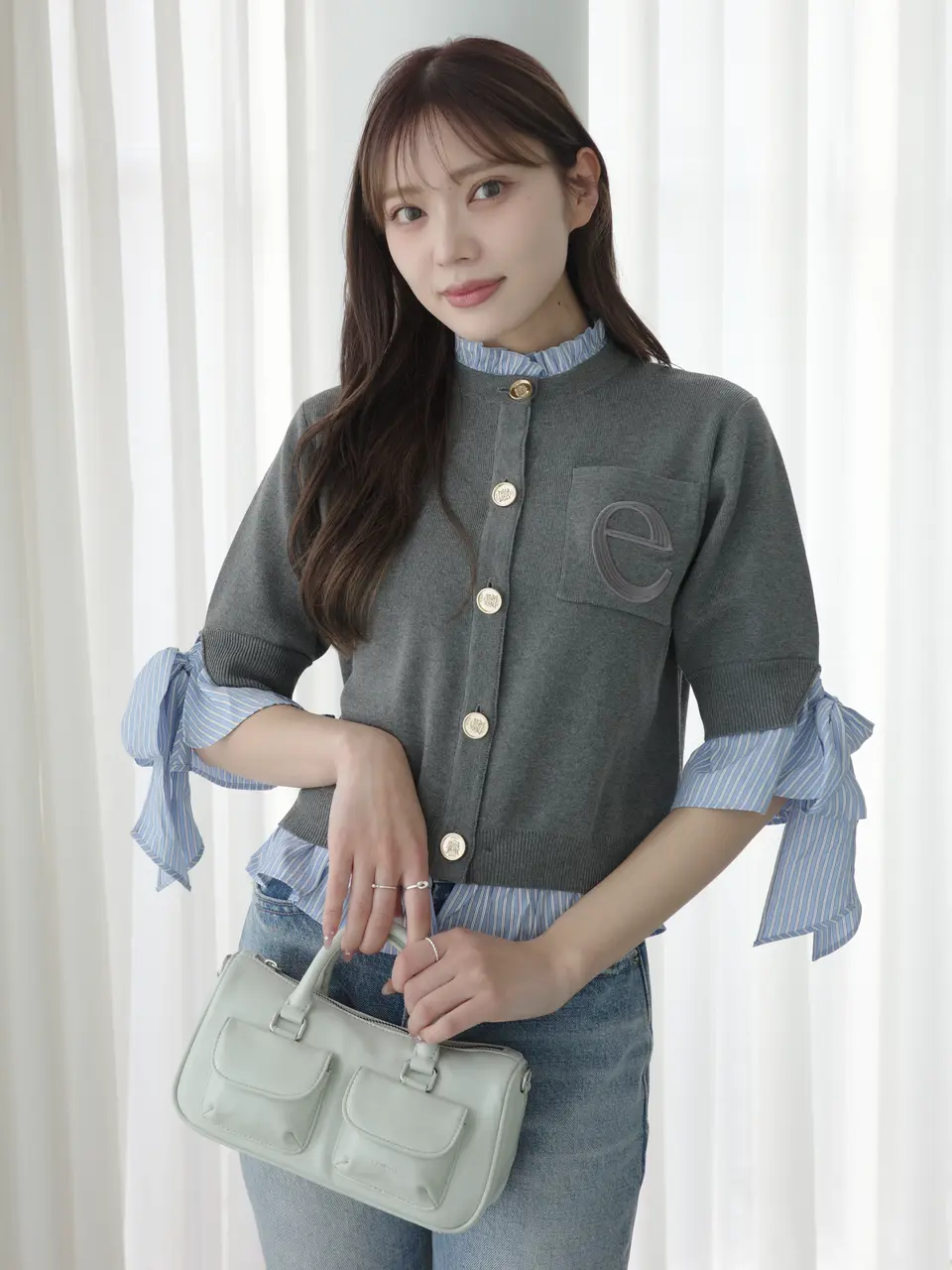 Attached Collar Half-Sleeve Cardigan(GREY) / ¥18,920(tax in)