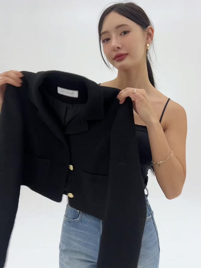 ワンピースに羽織ればレディライクに、デニムと合わせればカジュアルダウンしても品のある着こなしに。ミニスカートやハイウエストボトムとも相性がよく、コンパクトな丈感を活かしたバランスの良いスタイリングが叶います。オンオフ問わず活躍し、特別なシーンにもデイリーにも映える万能ジャケット。