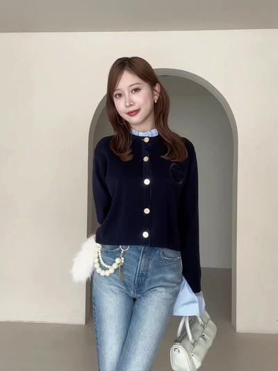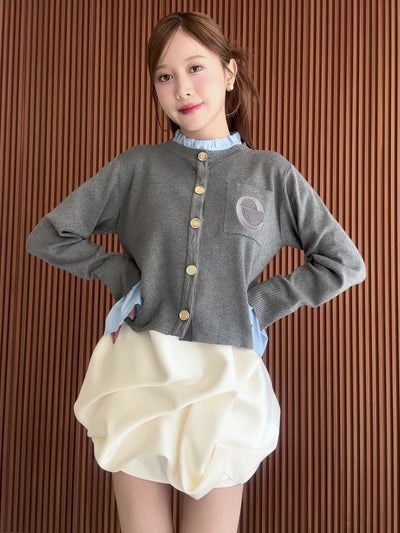 フロントに並んだゴールドボタンがアクセントになった上品なニットカーディガン。胸ポケットにはさりげない刺繍ロゴをあしらい、クラシカルな雰囲気に。コンパクトな丈感でボトムとのバランスが取りやすく、着るだけでこなれ感を演出します。 襟と袖のシャツは着脱可能。違った雰囲気もお楽しみいただけます。