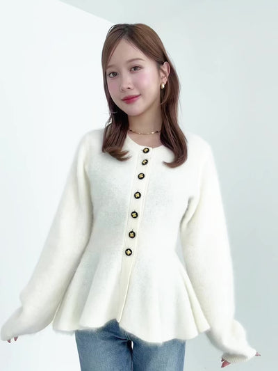 ふんわり暖かく、シルエット美人なウールペプラムカーディガン。