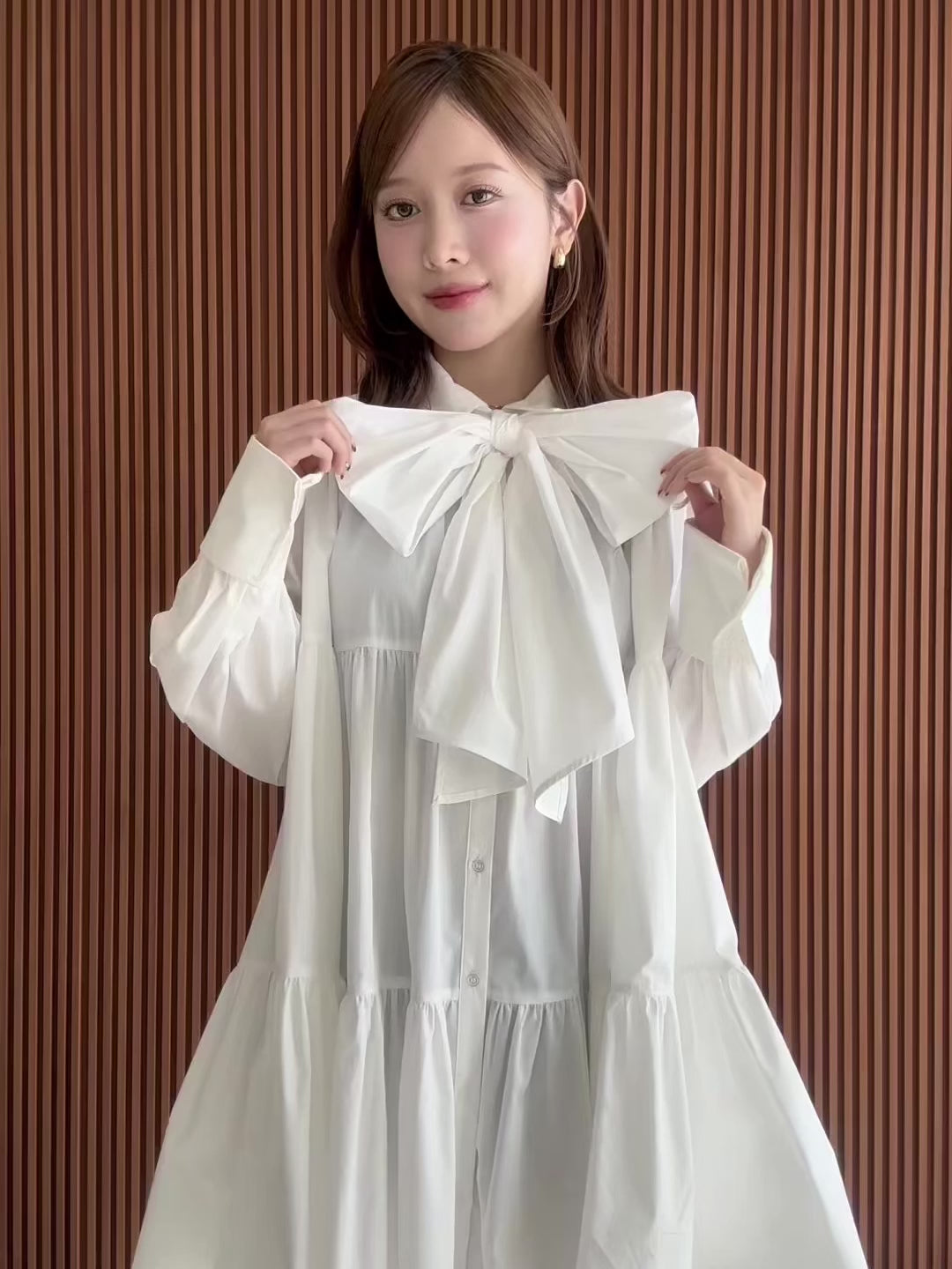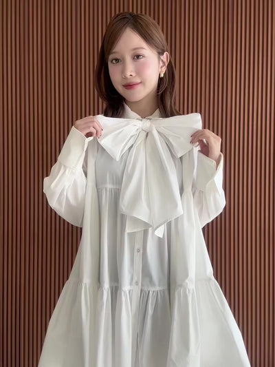 ふんわり甘く、華やかに。ボウタイ付きティアードワンピース。