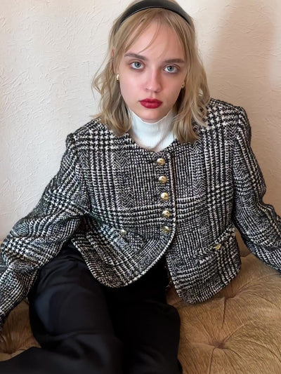 コンパクトなショート丈にすることで、ツイード特有のクラシック感をモダンにアップデート。